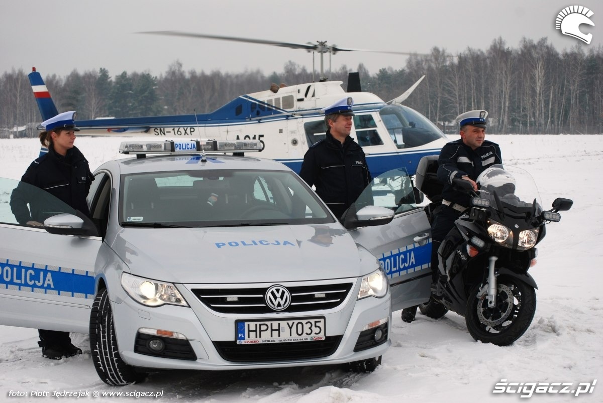 Policja ekipa samochod smiglowiec motocykl
