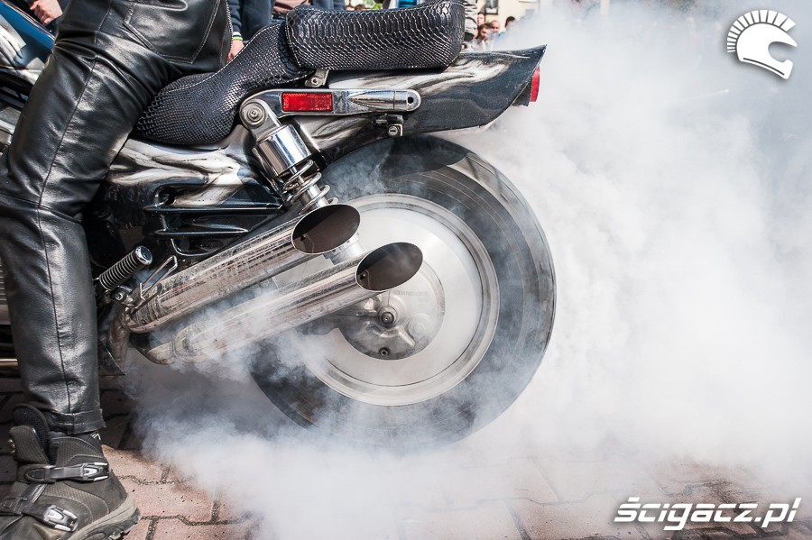 Kategoria: gallery relacje 2014 Rozpoczecie sezonu motocyklowego w Tarnowie 2014 Palenie gumy Tarnow jpg