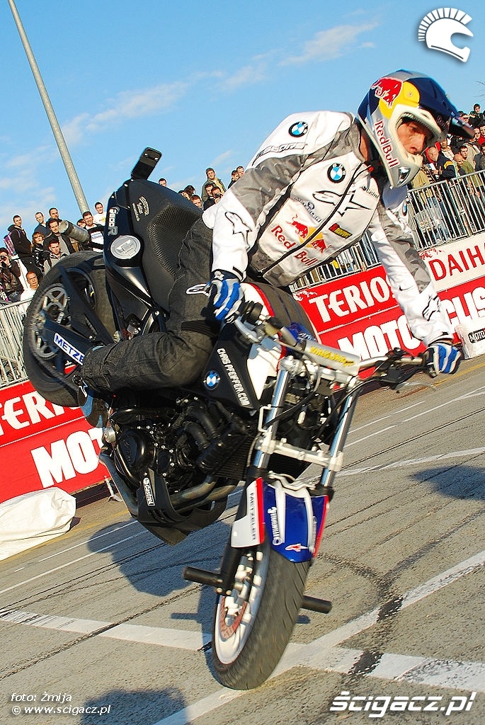 Kategoria: gallery relacje EICMA 2009 FMX Stunt Enduro stoppie Chris Pfeiffer BME F800 R jpg