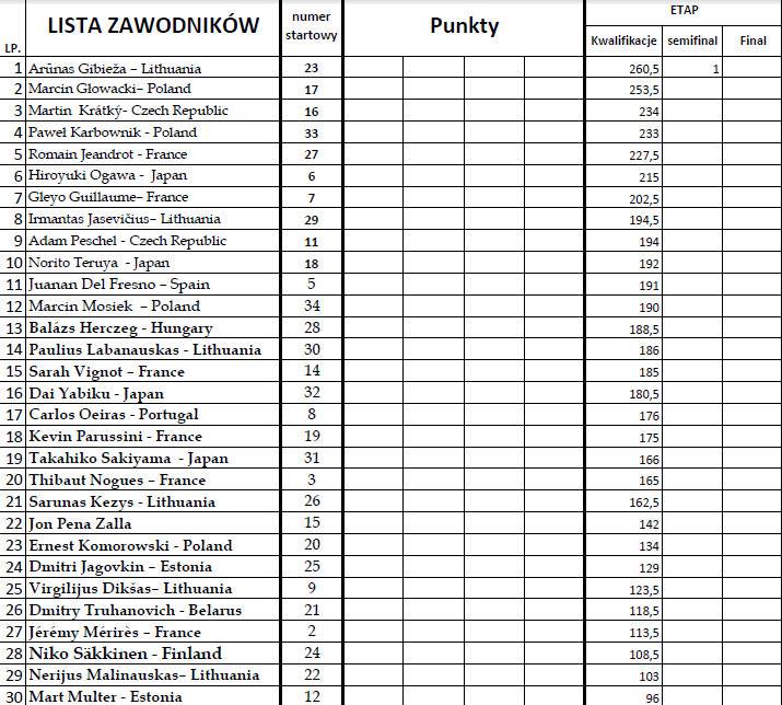 Wyniki kwalifikacje