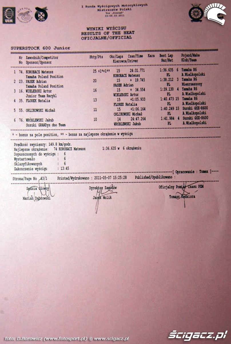 Wyniki superstock600 junior